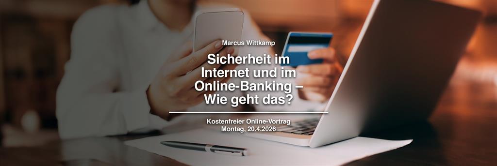 Mittlerweile verfügt statistisch gesehen jeder zweite Mensch auf der Welt über einen Internetzugang. Vor zehn Jahren noch war das Internet fast unbekannt. Shopping und Online-Banking gehören dabei heutzutage zu den am weitesten verbreiteten Anwendungen. Doch: Wie kann ich sicher im Internet einkaufen? Wie kann ich meinen PC und meine Daten schützen? Welche Bezahlverfahren sind sicher? Und: Wie kann ich mich im Online-Banking am besten schützen? In diesem Onlinevortrag erhalten Sie kompakte Informationen rund um das Thema Internetsicherheit.