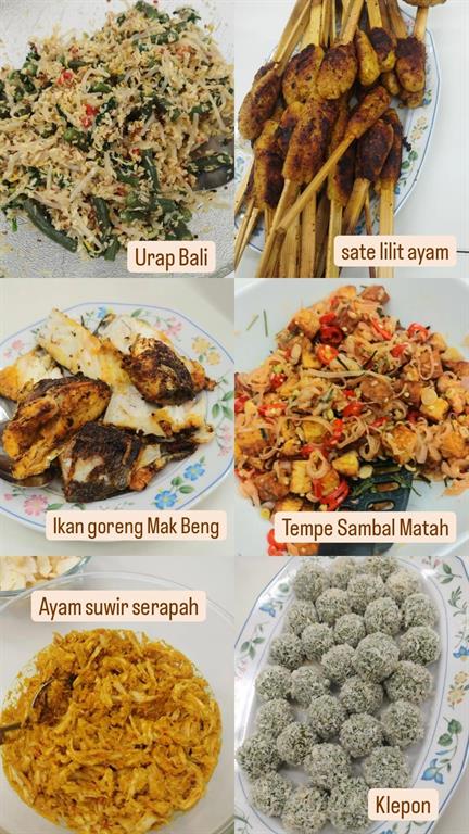 Sie werden in diesem Kurs einige Gerichte der „Insel der Götter“ zubereiten. U.a. Ikan bumbu Bali (gebratener Fisch in Chili Soße). Urap (verschiedene gekochte Gemüsesorten mit Kokosraspeln), Klepon Bali, mit Palmzucker gefüllte und in Kokosraspeln gewälzte Klebreisbeutel mit Pandan-Geschmack. Gewürzt wird u.a. mit Kaffir-Limettenblättern, Ingwer, kleinem Galgant, Zitronengras und Pandanblättern.